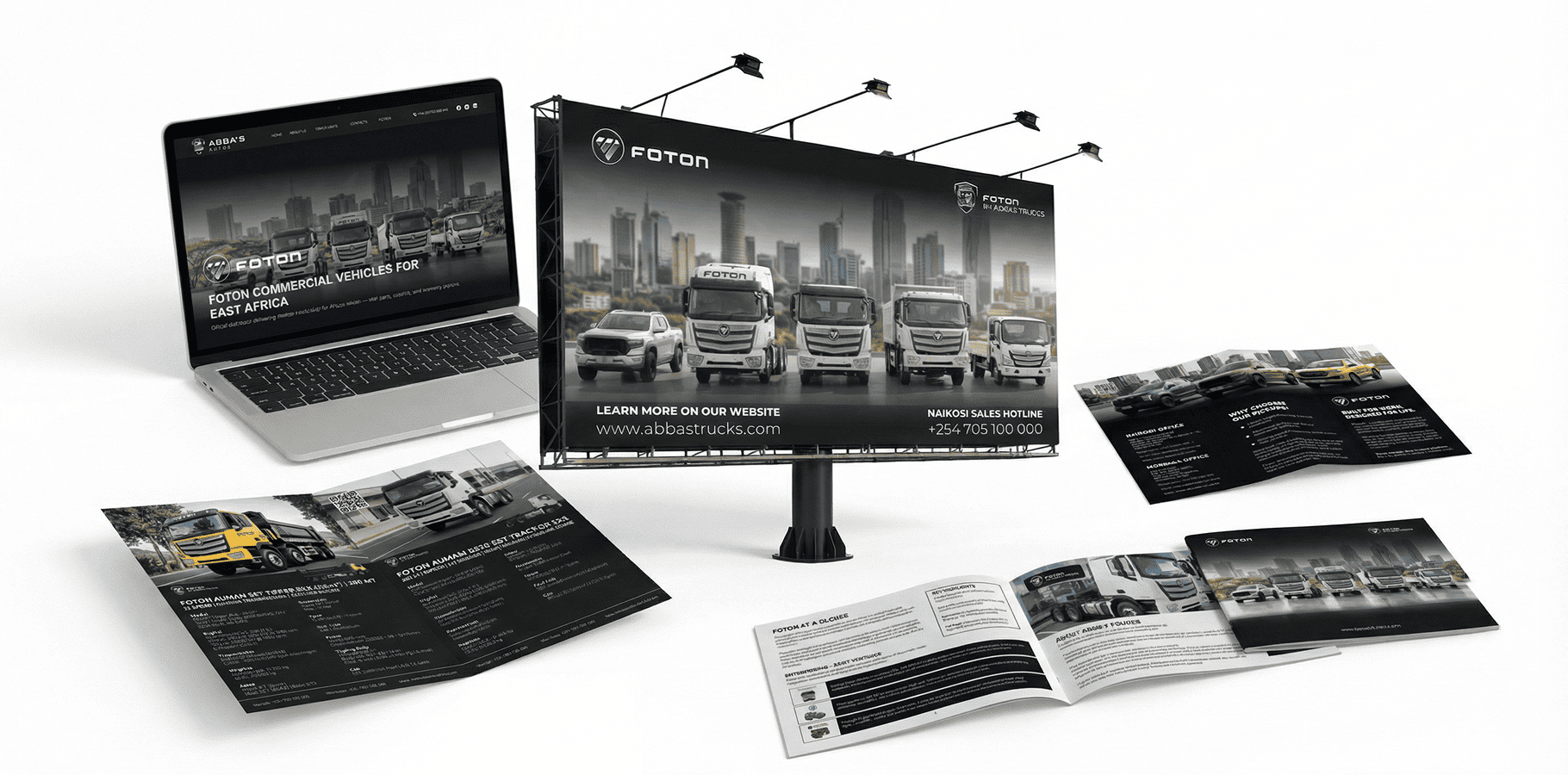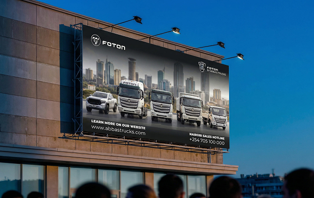 The campaign visuals focus on showcasing the vehicle lineup while clearly communicating the distributor partnership between Foton and Abba’s Autos, helping position the brand as a reliable commercial vehicle solution for the East African market.