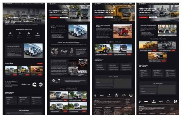 Abba’s Autos partnered with Pixleo to develop a unified marketing and digital presence for Foton commercial vehicles across East Africa. The objective was to create a clear, professional system that could communicate technical vehicle information while still appealing to business buyers, fleet operators, and construction industries.