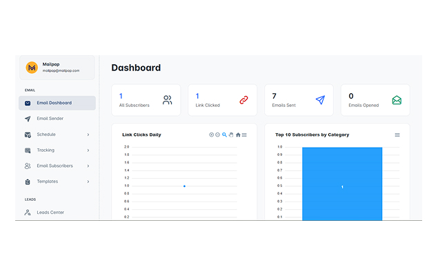 MailPap is a SaaS email marketing and tracking platform designed to simplify bulk outreach for businesses, creators, and marketing teams. The objective of the project was to develop a platform that removes the complexity of traditional email tools while giving users powerful campaign tracking and analytics in one centralized dashboard.